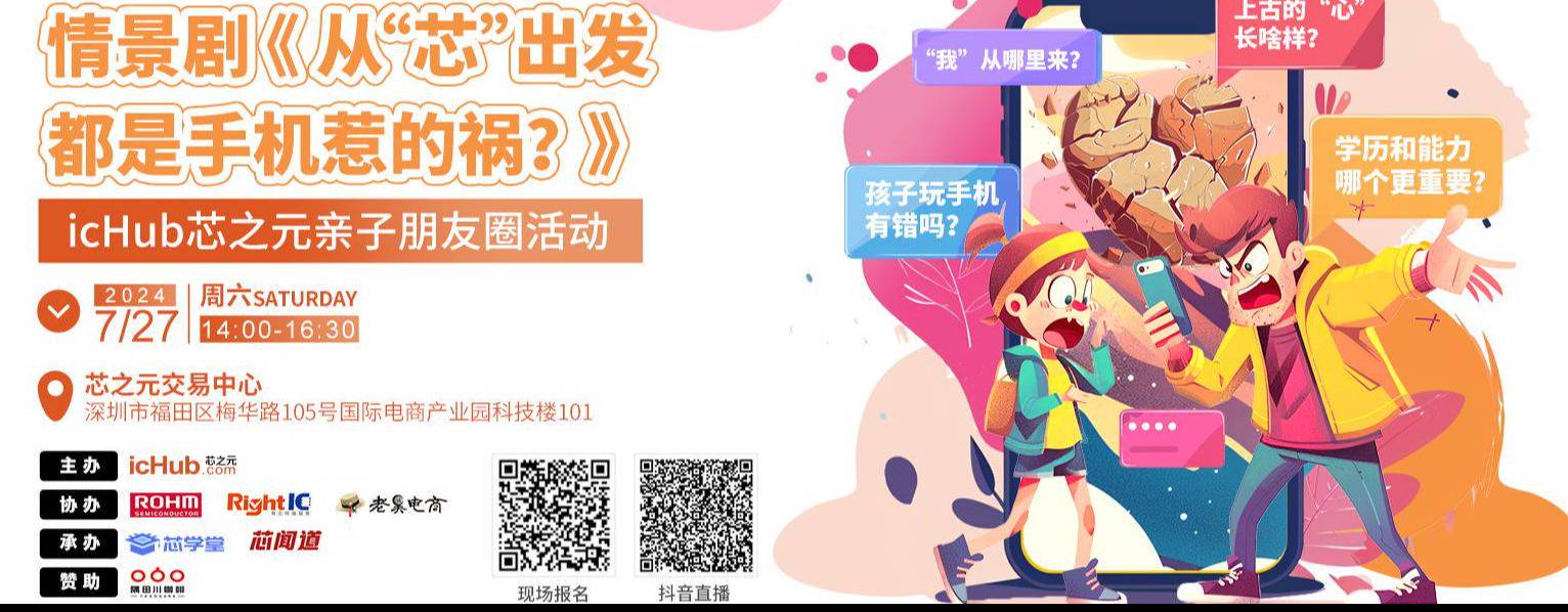 孩子与家长的关系如何处理?学业与就业是什么关系?少子化是错误吗?芯片与心、以及职业和我,有什么关系?等等这些,都是芯片供应链上下游的家长和孩子们关心的热点。芯之元icHub亲子朋友圈推出芯闻道情景剧《从“芯”出发:都是手机惹的祸?》,原汁原味,行业特制。欢迎业界家长和孩子们点击下方报名链接现场观看。